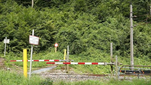 Bahnübergang mit Schranken außer Betrieb, Waidhofen an der Ybbs, ÖBB. passage à niveau