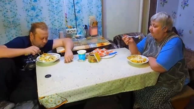Перемолол пшеницу приготовил лапшу Самая добрая и дружная семья ужинает за столом ДОМАШНЕЙ ЛАПШЕЙ