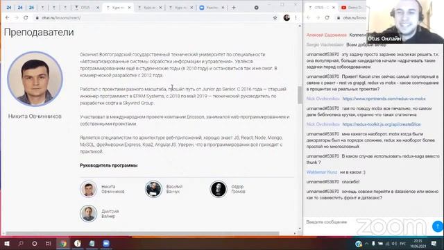 Demo Day — отличная возможность задать все вопросы по курсу, узнать подробнее о программе курса, особенностях онлайн-формата, навыках, компетенциях и перспективах, которые ждут выпускников после обучения. Преподаватель-практик расскажет о себе, своём опыте, поделится лайфхаками по выгодной оплате курса. Готовьте вопросы, сдавайте вступительный тест и присоединяйтесь! «React.js Developer» - https://otus.pw/oCD2/ Преподаватель: Никита Овчинников – является специалистом по архитектуре веб-приложений, хорошо знает JS, React, Node, Mongo, MySQL, фреймворки Express, Koa2, AngularJS Подключайтесь к обсуждению в чате - https://otus.pw/974R/ Пройдите опрос по итогам мероприятия - https://forms.gle/JNpvbhzTvptG8S7i7 Следите за новостями проекта: - Facebook: https://otus.pw/3hO2 - Telegram: https://t.me/Otusjava - ВКонтакте: https://otus.pw/850t - LinkedIn: https://otus.pw/yQwQ/ - Хабр: https://otus.pw/S0nM/