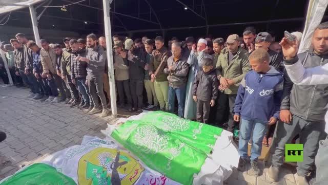 شيع أهالي غزة جثامين عدد من مقاتلي حركة حماس من بينهم رائد سعد قائد ركن التصنيع العسكري في كتائب القسام، الجناح العسكري لحركة حماس، الذي قضى إثر غارة إسرائيلية يوم السبت.