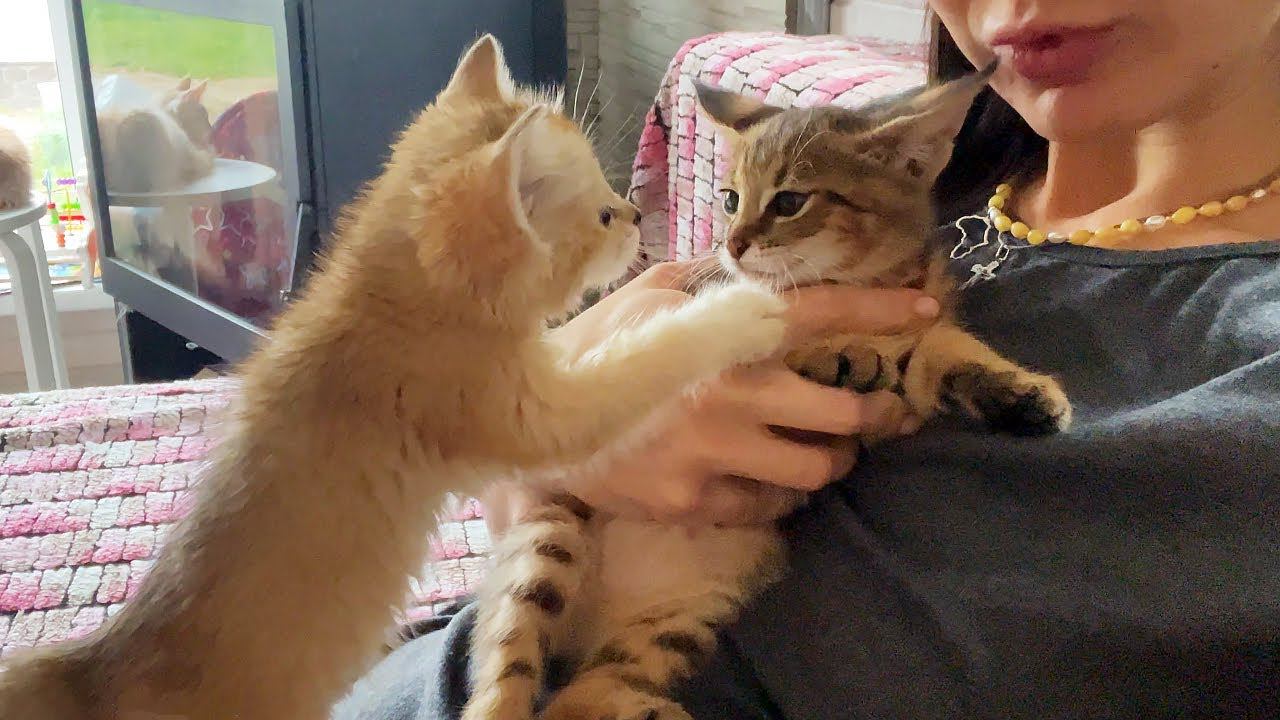 УТРО С СЕРВАЛОМ МИЕЙ / Чаузи сопротивляется приручению, а барханный котенок ей завидует