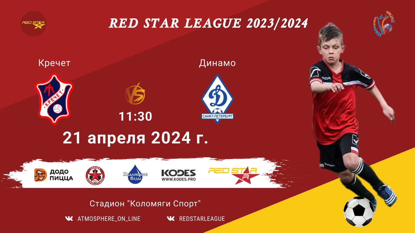 Red Star League среди команд 2011-2012 г.р. (U12-U13) 21 АПРЕЛЯ 2024 САНКТ-ПЕТЕРБУРГ, Стадион "Коломяги-Спорт" ФК "Кречет" - ФК "Динамо"/Red Star League, 21-04-2024 11:30