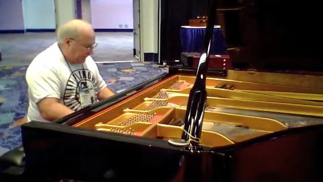 Frank Baxter, founder/host of Piano World (www.PianoWorld.com) working the ivories on an Estonia grand piano at the NAMM show. Playing: The end of a piece I wrote, a rock version of Beethoven's Moonlight Sonata, and excerpts from Billy Joel's Rootbeer Rag.