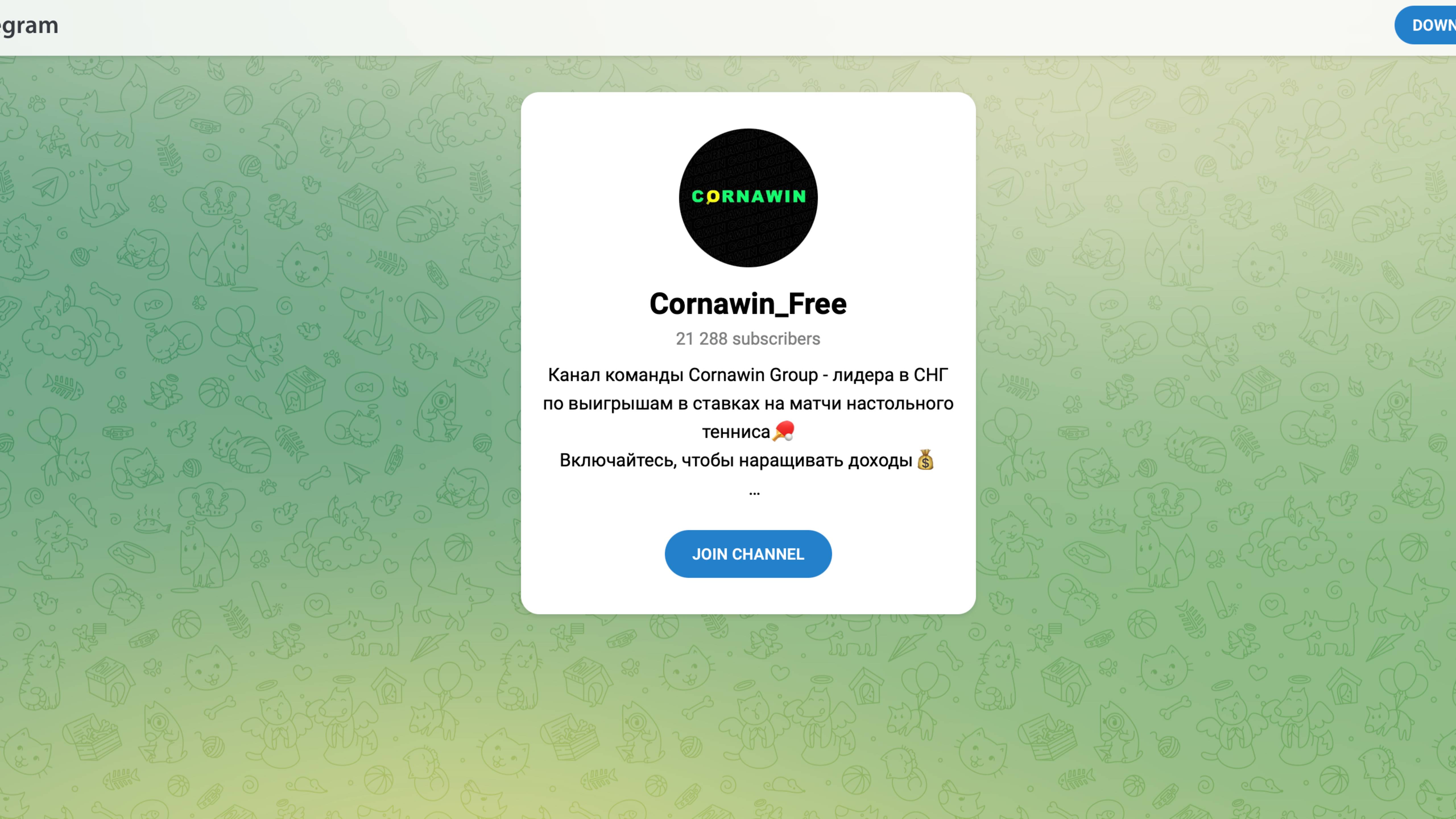 💸🤑 Как я зарабатываю в интернете уже больше 4-ех месяцев: https://brokers-list.com/video ✅ Вам нужно подписаться и прочесть закрепленный пост (инструкцию) - ВСЕ). ✅ Пишите свои комментарии и отзывы под нашим роликом, если был положительный или отрицательный опыт работы с "Корнавин". Владельцы проекта регулярно демонстрируют о Cornawin отзывы в Телеграм канале. Согласно размещенной на отдельном ресурсе информации, все подписчики канала довольны работой команды аналитиков, которые ежедневно публикуют платные и бесплатные прогнозы на настольный теннис. Проверим, надежные и реальные ли высказывания игроков демонстрируют капперы проекта, и заслуживают ли его прогнозы доверия клиентов.