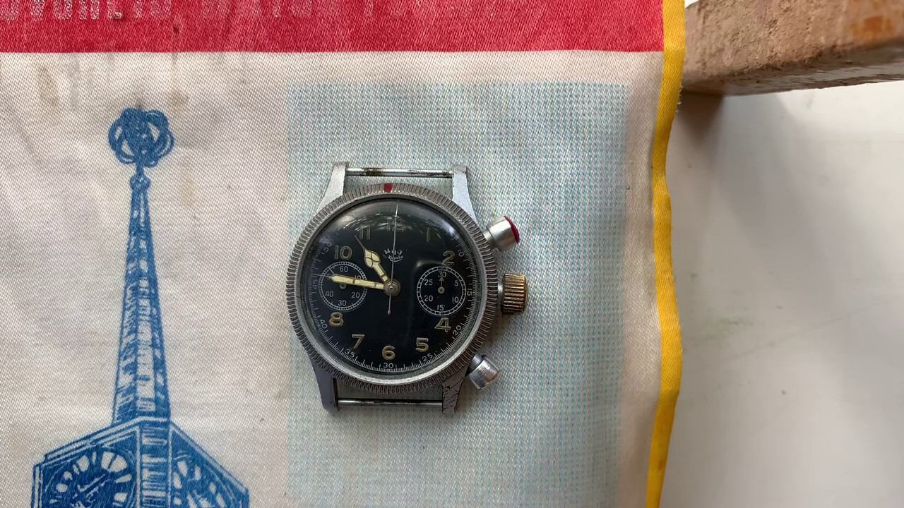 Видеообзор на очень редкий хронограф «Tutima» выпуска 1947-1949 гг. 1-го Московского часового завода имени Кирова. Фирма TUTIMA в городе GLASHUTTE (земля Саксония, бывшая ГДР) на базе механизма UROFA-59 (разработка 1938-1939 гг.) собирала для Люфтваффе хронографы в период с 1941 по 1945 гг. Всего было выпущено около 218000 часов с номерами механизмов: 000001-203500 (позолоченные), 203500-211000 (посеребренные), 211000-218000 (хромированные). После оккупации нами Восточной Германии в 1945 г. весь завод (в т.ч. еще готовых примерно 2000 хромированных механизмов) был вывезен в Москву, и после года пуско-наладочных работ и обучения из немецких комплектующих (но с надписью «1 МЧЗ им. Кирова» вместо «GLASHUTTE» на циферблате) в период с 1947 по 1949 гг. было собрано около 2000 часов с черным циферблатом и стрелками со светомассой и винтовой крышкой (механизмы с номерами 218000-220000 с немецким градусником). Далее в период с 1949 по 1951 гг. было собрано еще около 5000 часов с клеймом 1 МЧЗ и русским градусником (с номерами примерно 00001-03500 1 МЧЗ- наручные АНЧС с черным циферблатом и стрелками со светомассой и винтовой крышкой или с посеребренным циферблатом без светомассы и в своих отечественных корпусах с крышками-хлопушками- как увеличенные Победы с центральной секундной стрелкой; а также с номерами примерно 03500-05000 сборки 2 МЧЗ –карманные). Введение пятитизначной сквозной нумерации механизмов говорит о том, что планировалось сделать до 100000 таких часов (как 3017), однако сделали всего около 5000 шт., видимо не справились с производством механизмов. Механизмы были хромированные, кроме, видимо, небольшой позолоченной партии с номерами 034** в конце 1949 г. Основные характеристики механизма: диаметр 33 мм, точность -3 +12 с/сут., температура эксплуатации -10 +40 градусов по Цельсию без потери характеристик, 21 камень, отличительная функция «флэйбэк»- обнуление счетчика нижней кнопкой без его остановки одним нажатием, т. е. секундомер «кругами». На смену АНЧС пришел однокнопочный обычный карманный хронограф специального военного назначения 2 МЧЗ (1953-1957 гг.),- доработанная собственными силами Молния.