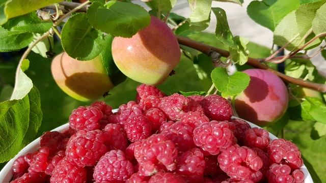 Натюрморты малины с цветами и яблоками)