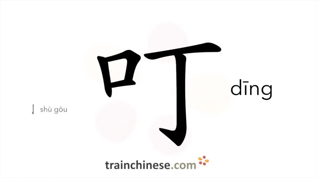 叮 (dīng) to sting or bite (of mosquito, bee, etc); say repeatedly; urge insistently