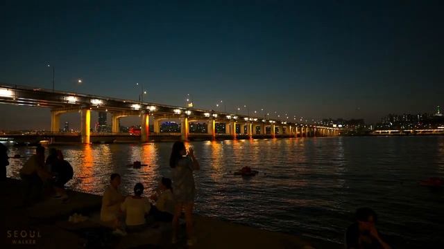 Seoul Night Walk on Banpo Bridge Moonlight Rainbow Fountain