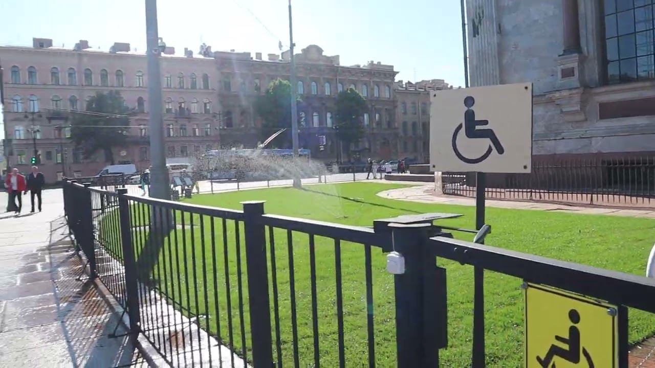 Около Исакиевского собора установили поливалки на газонах.Раньше их не было.Понедельник, 24 июля2023