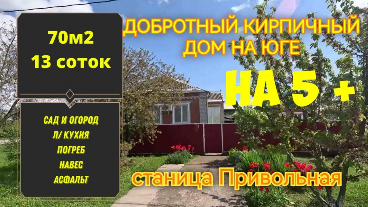 ПРОДАЁТСЯ КИРПИЧНЫЙ ХОРОШИЙ ДОМ НА ЮГЕ/ 70м2/ 13 соток/ Газ/ Вода/ Центр ст. Привольная/ продан!