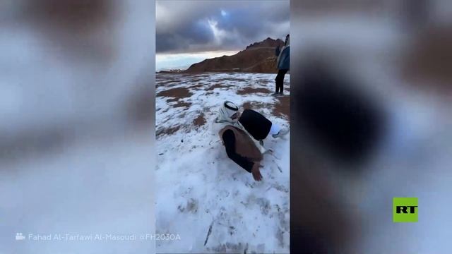 شهد جبل اللوز في منطقة تبوك السعودية يوم الجمعة تساقط ثلوج غطت الجبل وجعلته يظهر باللون الأبيض الساحر.