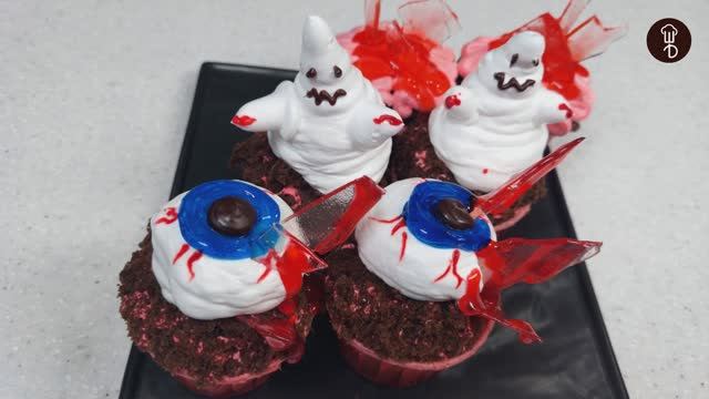 Как насчет глаз, кусочка мозга и привидений? На самом деле это шоколадные маффины с воздушными сливками, нежным шоколадным бисквитом, ярким клубничным топпингом и гелем от Шефа. Хэллоуин – праздник, когда хочется удивлять и шокировать, а он уже близко! Шеф решил влиться в эту атмосферу страшного веселья и предлагает тебе свое видение хэллоуинских десертов, которые идеально подойдут для популярных в день всех святых тематических вечеринок. Тем более их очень легко приготовить! Ингредиенты для приготовления: • Маффины из шоколадной смеси "Шеф Дукат" • Сливок "Шеф Дукат 302" • Топпинга Шеф Дукат "Клубника" • Гель "Шеф Дукат" "Вселенная" • Гель "Шеф Дукат" "Клубника" • Гель "Шеф Дукат" "Шоколад" • Красный пищевой краситель • Сахарное стекло #Halloween #Хэллоуин #маффины #кексы #ШефДукат #декор