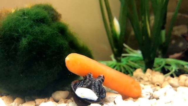 Так улитка ест морковь