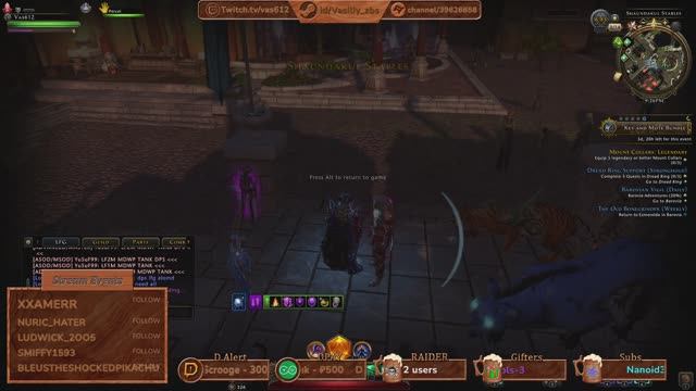 #mmorpg #dnd #pve 📺 Стримы 📺 Twitch - https://www.twitch.tv/vas612 RuTube - https://rutube.ru/channel/39626858/ 📆 Расписание 📆 [Google] - https://docs.google.com/spreadsheets/d/1TT92gOhqonRA0K-Yle6MLWyo9zQdrzvkKLGfyTwyxZ4/edit#gid=0 [Twitch] - https://www.twitch.tv/vas612/schedule ❗ Лучшая поддержка для автора ❗ Поставить лайк - 👍 Подписаться на канал - ⭐ Жми колокольчик - 🛎️ 💲 Для материальной поддержки 💲 https://www.donationalerts.com/r/vas612 https://streamelements.com/vas612/tip 🍻 Почетные гости Таверны 2025г 🍻 ================================ 🍖 - Swebokk ⚒️ - Nerimoira ⚒️ - hunter31081997 ⛏️ - hagibatorkaktusov ⛏️ - Аноним ⛏️ - DashaDashunya ⛏️ - LilScrooge ⛏️ - 3pleFS