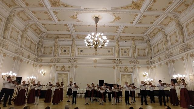 Исполняет сводный ансамбль скрипачей Царскосельской Гимназии искусств им. А. Ахматовой. Руководители Ю. Минакова и И. Панкова. Малый зал им. М. Глинки СПб филармонии им. Д. Шостаковича. 3 декабря 2023 г.