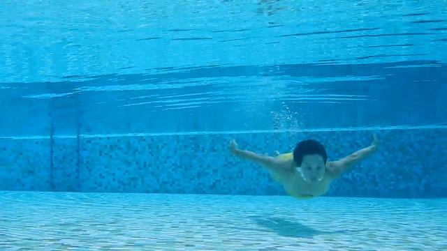 Купальщица плавает под поверхностью воды в бассейне.