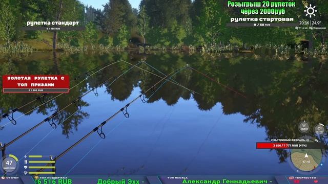 Поддержка донатом https://www.donationalerts.com/r/kalyamba11 Альтернативный донат https://new.donatepay.ru/@1032463 5536913964533059 карта Тинькоф Если стрим лагает,смотри стрим на трово https://trovo.live/s/Kalyamba_na_Ribalke Мой ВК - https://vk.com/kalyantv НИК в игре kalyan11 НАШ ДИСКОРД СЕРВЕР https://discord.gg/mSbnTJK8TB Заказ водоема на 1 час - 500р ( весь стрим 2500р ) Модерка на канале 1200р ( каждая следующая на 100р больше) Озвучка доната на 40р,50р,100р,200р,300р,500р,1000р ✅Призы в рулетке "ЗОЛОТАЯ" ✔ ЗОЛОТО ✔ ПРЕМ ✔ КАТУШКИ РАПТОР 40, АЗИМУТ 10000, СИЛЬВЕР 80, ТАЙГА с 30 ✔ ПАЛКИ ПИЛКЕРНАЯ, ДОНКА МОРСКИЕ, ✔ РОД ПОД, СТУЛЬЯ ✅Призы в рулетке СТАНДАРТ : ✔ катушка "РАПТОР 40" ✔ катушка "АЗИМУТ 10000" ✔ катушка "ТАЙГА С30, С40," ✔ катушки 60 для медного ( ЭВИИ, НАТОРЫ, ГОЛДА, и тд) ✔ ПИЛКЕРНОЕ УДИЛИЩЕ КОРОЛЕВА ОКЕАНА ✔ Морское Донное удилище ✔ прем ( 3, 7, 30 дней) ✔ золото ( 1, 3, 5, 10, 20 ,50) ✔ билет на море ( 1, 3, 5 дней) ✔ голд наживка и др. ✅Призы в рулетке "СТАРТОВАЯ" ✔ катушка "silver80" ✔ катушка "БЕЛЫЙ КАЛИБР" ✔ катушка "Черный калибр" ✔ катушка "Протон" ✔ катушка "Нарга 6000" ✔ Набор Фидерист и спинингист ✔ Карповик Фортуна ✔ фидерные удилища ✔ прем, золото, алкашка, наживки и тд P.s Рулетка это не казино, а награда за поддержку стримера. Вечный ТОП ПОДДЕРЖКИ (11.05.2024) 1. Dimon_pokemonchik 119 784 2. Interceptor 75 508 3. Skreb79 71 261 4. une personne 68 619 5. Нарвал77 31 550