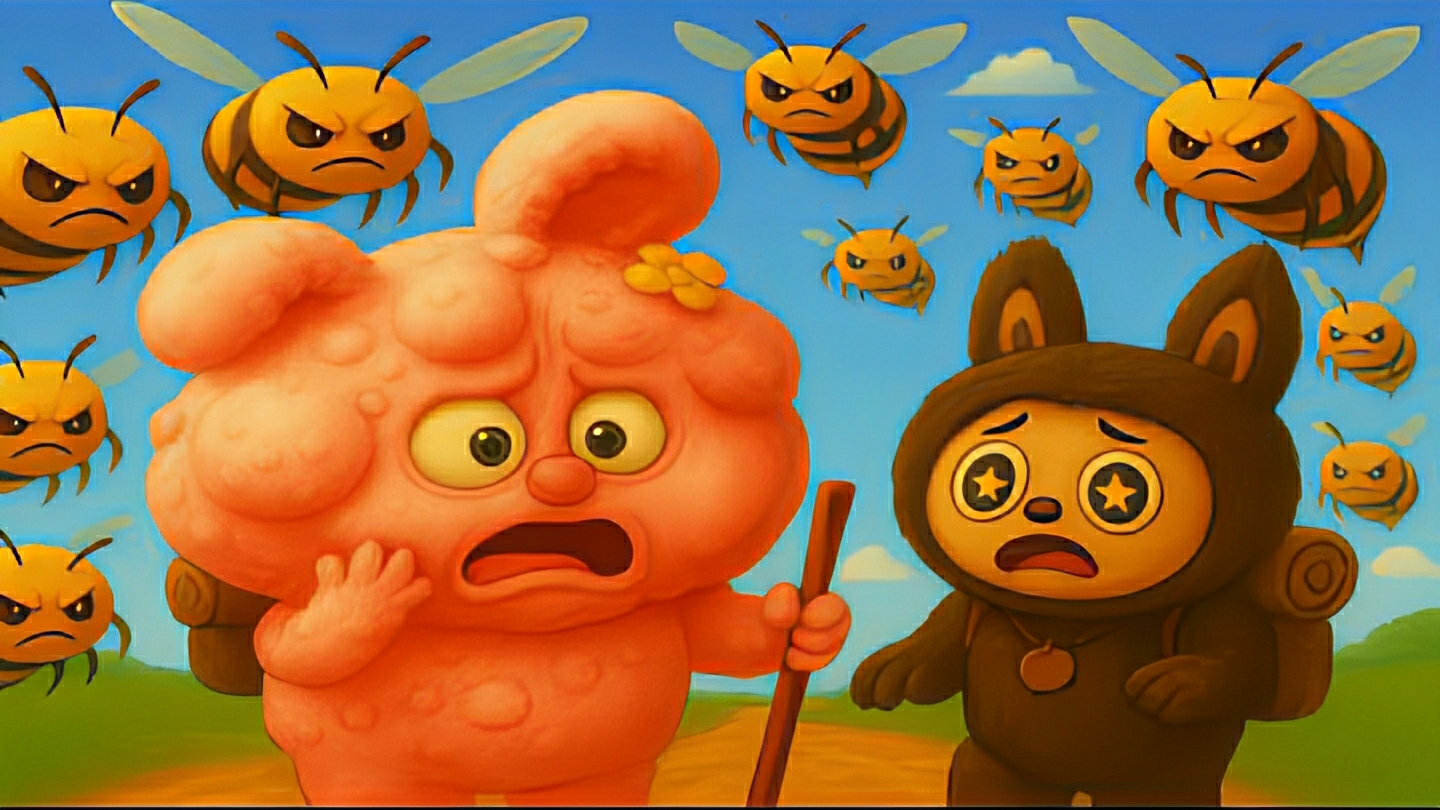 Лабубу покусали пчелы в лесу. Веселая история
