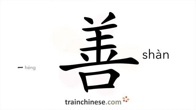 善 (shàn) good and honest; friendly; be apt to; be good at; be adept in