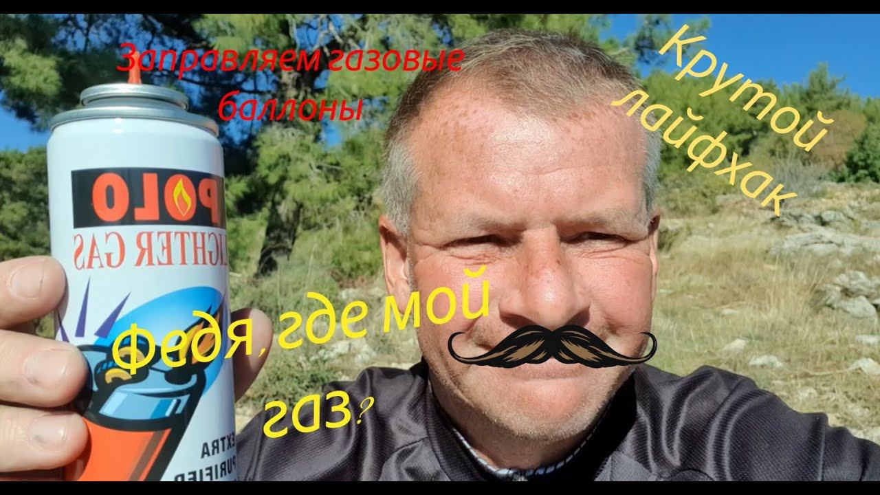 Заправка туристических баллонов газом для зажигалок.