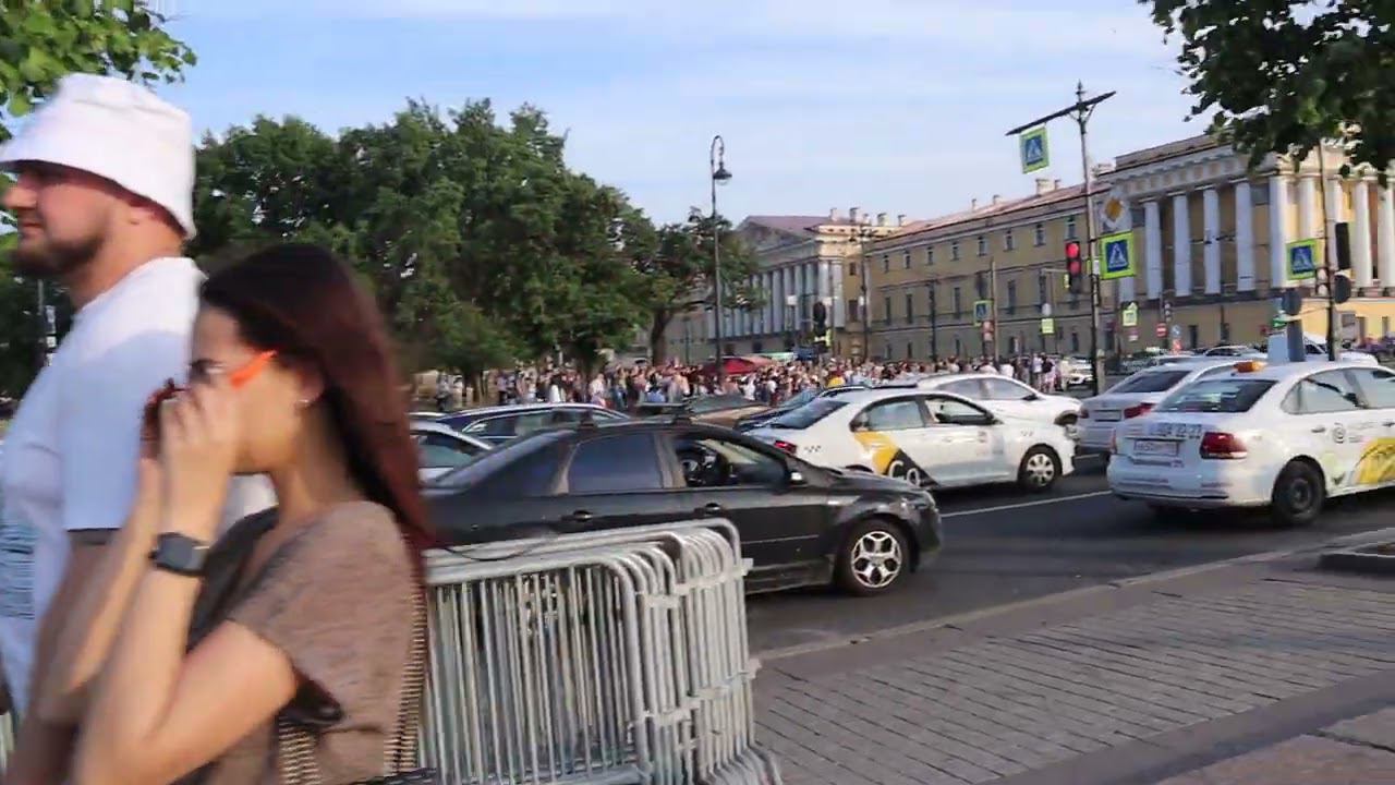 Неведомый длинный понтон на Неве (видимо, готовятся к Алым Парусам). Субботний вечер, 17 июня 2023 г
