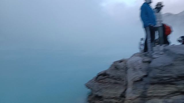 К соляному озеру в вулкане Иджен можно прикоснуться,не бойтесь,руки останутся целы!На поверхности вода градусов 50-60.