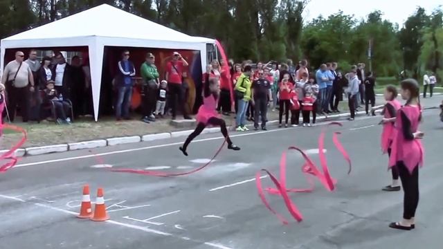 Танец на асфальте от юных гимнасток
