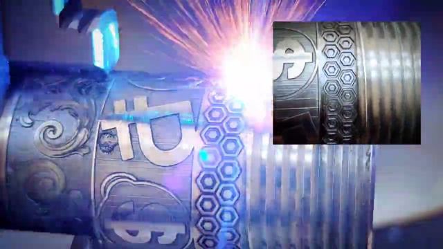 Глубокая лазерная гравировка на поворотной оси.