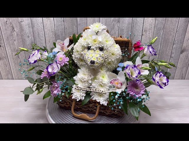 Авторская фигура пуделя из кустовых хризантем в плетёном сундучке. Детальнее о товаре https://ranunculus.ru/igrushki-iz-tsvetov/figurka-pudelya-iz-zhivykh-tsvetov/ Смотрите также: Собаки из живых цветов https://ranunculus.ru/igrushki-iz-tsvetov/sobaki-iz-tsvetov/ Животные из цветов https://ranunculus.ru/igrushki-iz-tsvetov/zhivotnye-iz-tsvetov/