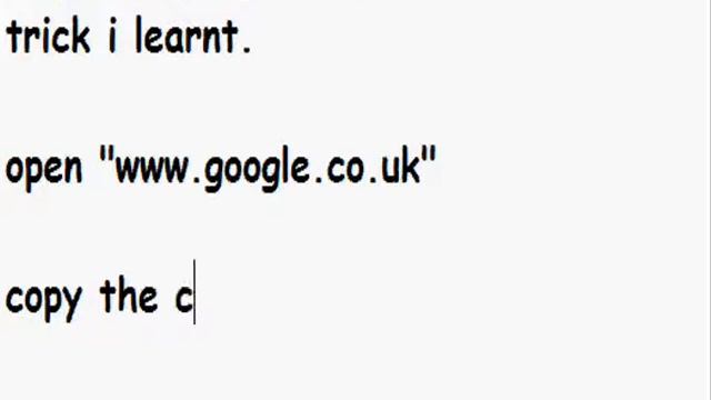 This video shows how to make Google image fly. this only works on www.google.co.uk (havent tried on others) you will need this code, info in the video ---------------------------------------- javascript:R=0; x1=.1; y1=.05; x2=.25; y2=.24; x3=1.6; y3=.24; x4=300; y4=200; x5=300; y5=200; DI=document.images; DIL=DI.length; function A(){for(i=0; i-DIL; i++){DIS=DI[ i ].style; DIS.position='absolute'; DIS.left=Math.sin(R*x1+i*x2+x3)*x4+x5; DIS.top=Math.cos(R*y1+i*y2+y3)*y4+y5}R++ }setInterval('A()',5); void(0); -------------------------------------- Oh! also remember! ╔═╦╗╔╦╗╔═╦═╦╦╦╦╗╔═╗ ║╚╣║║║╚╣╚╣╔╣╔╣║╚╣═╣ ╠╗║╚╝║║╠╗║╚╣║║║║║═╣ ╚═╩══╩═╩═╩═╩╝╚╩═╩═╝