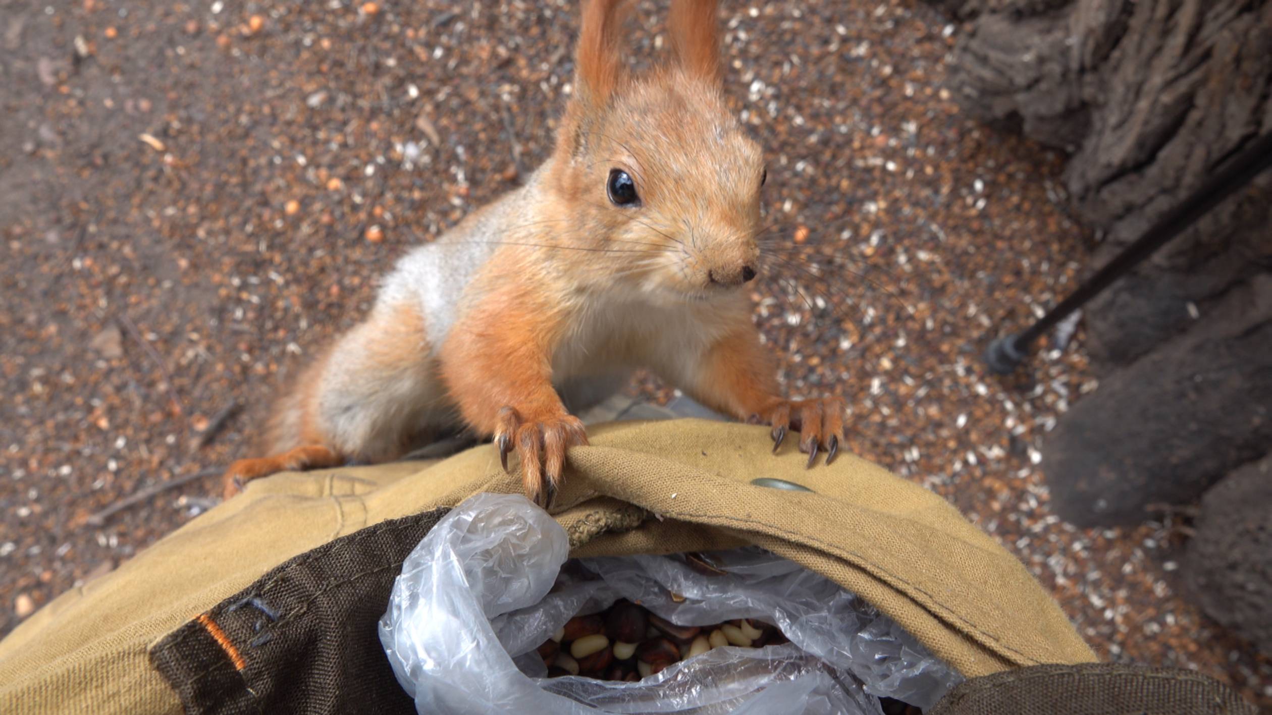 Карманная белка и голодный дятел. Зарисовка