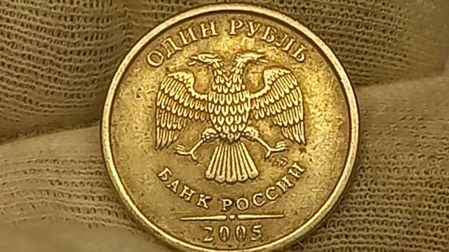 Цена от 5 до 100 рублей 1 рубль 2005 года. Московский монетный двор.