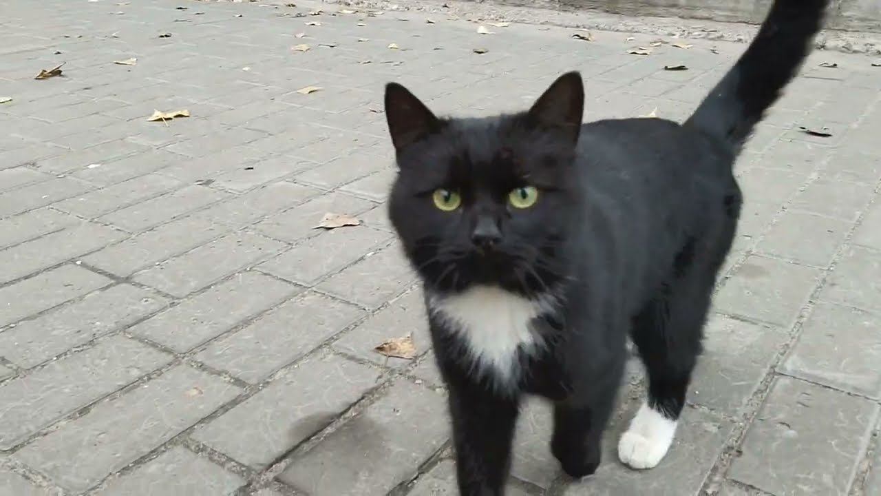 Чёрный котик, бархатный животик - гуляет. #shorts