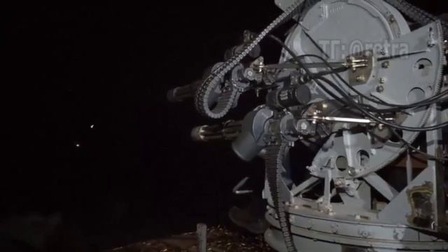 Это ручная орудийная шайтан-установка, оснащённая четырьмя «Миниганами», которая совершает примерно 12 тысяч выстрелов в минуту. Видите, что пули светятся при выстреле? Они с так называемыми трассерами. А трассирующий только каждый пятый выстрел. То есть между этими светящимися пулями, которые показывают направление выстрелов, есть ещё четыре пули.