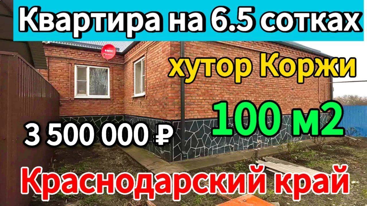 🌴Цена ниже! Продаётся дом 98,9 м2🦯6,5 соток🦯газ🦯вода 🦯3 500 000 ₽🦯хутор Коржи🦯8945404992 В