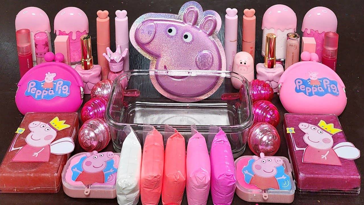 Свинка Пеппа Смешивает слаймы из блесток для макияжа в Слайм, Космический звку Слайм ASMR