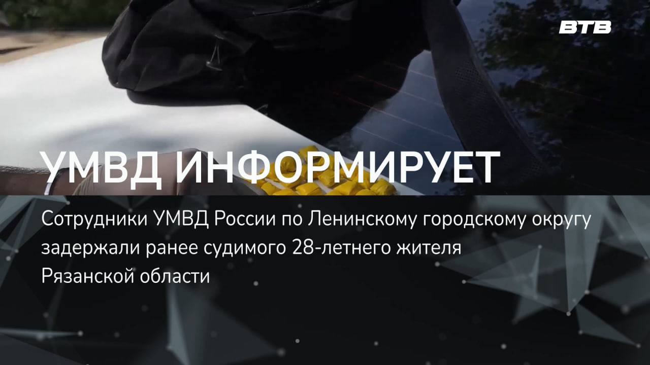 Сотрудники патрульно-постовой службы полиции УМВД России по Ленинскому городскому округу задержали ранее судимого 28-летнего жителя Рязанской области, подозреваемого в незаконном обороте наркотиков