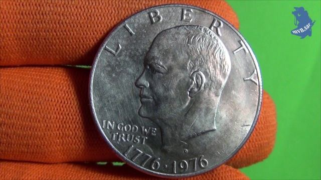 mvn.sar 1 доллар (dollar) 1976 года. 1776-1976 .Денвер (D) .200 лет независимости США. #521 Тип Юбилейные монеты Аверс в центре изображен бюст президента Дуайта Эйзенхауэра, слева надпись «In God We Trust» (На Бога мы уповаем), вверху надпись «Liberty» (Свобода), внизу дата 1776-1976. Реверс: изображение "Колокола Свободы" на фоне луны, в верхней части полукругом «United States of America» (Соединённые Штаты Америки), внизу буквенное обозначение номинала «ONE Dollar» (Один доллара) https://www.youtube.com/watch?v=7A4cH9AOoUU