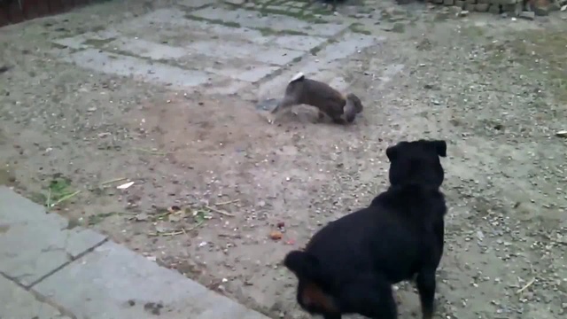 бесстрашный кролик гоняет ротвейлера