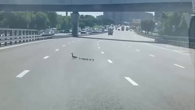 🦆Неравнодушные водители остановили движение на скоростной трассе, чтобы пропустить утку с утятами🦆