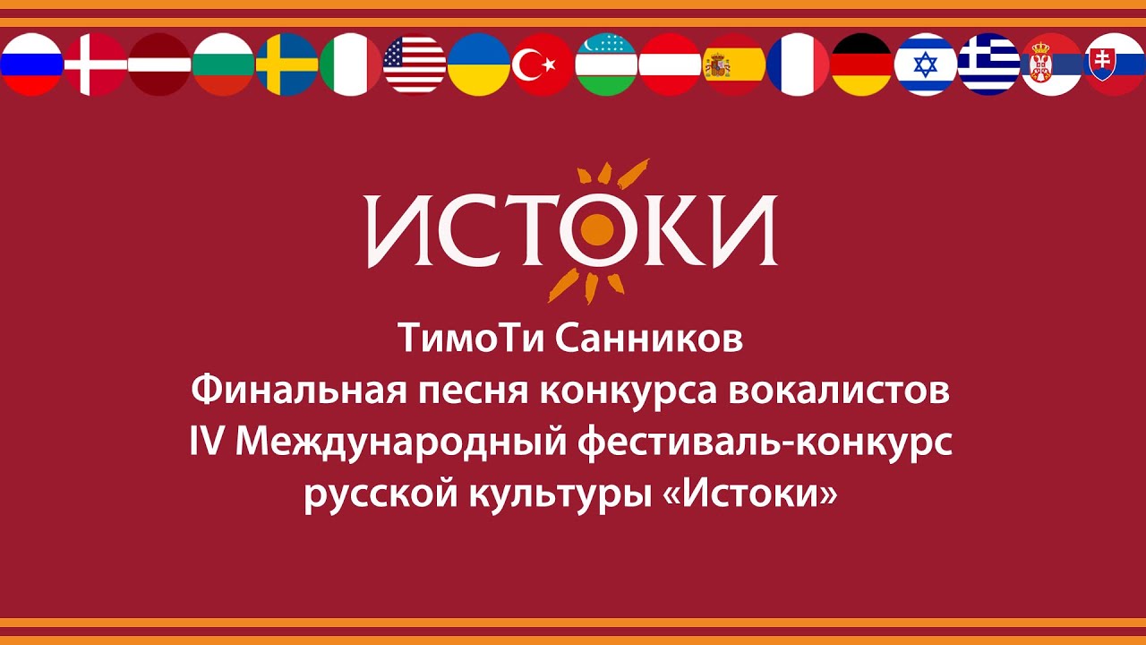 ТимоТи Санников, Израиль «Лучший Город Земли». Фестиваль-конкурс русской культуры «Истоки» ставит своей задачей показать многообразие и красоту русской культуры, которая на протяжении многих веков формировалась за счет традиций многонациональности и добрососедства. Фестиваль-конкурс русской культуры «Истоки» - многоплановое мероприятие, которое объединяет конкурс вокалистов, обширную экскурсионную и культурную программу, концертные выступления, гала-концерт и награждение участников фестиваля-конкурса. Мы расширяем русскоязычное пространство. Благодаря поддержке Россотрудничества в фестивале принимают участие дети-соотечественники, проживающие за рубежом. Сайт: www.festistoki.ru E-mail: festistoki@mail.ru