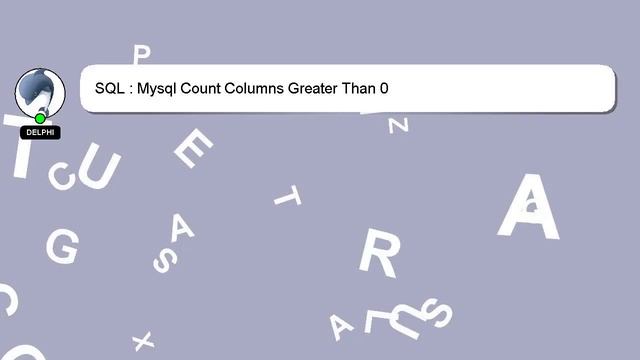 SQL : Mysql Count Columns Greater Than 0 To Access My Live Chat Page, On Google, Search for "hows tech developer connect" As promised, I have a hidden feature that I want to share with you. This is a YouTube's feature which works on Desktop. First, Make sure this video is playing. Next, enter the letters 'awesome' on your keyboard. The progress bar on YouTube will be altered to a flashing rainbow. A brief presentation of myself, Nice to meet you, I am Delphi. I help you answer your questions. SQL : Mysql Count Columns Greater Than 0 Let me know if you have more specific questions or concerns by leaving a comment or starting a chat. Don't hesitate to provide your answer or insights by leaving a comment below. Providing an answer will be acknowledged and appreciated with a 'heart' from me. Greater Than Count SQL : Columns 0 Mysql