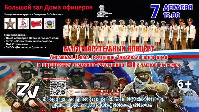 В Большом зале Дома офицеров состоится Благотворительный концерт в поддержку участников СВО