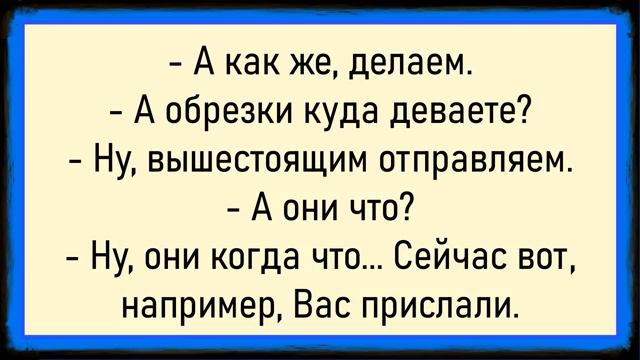 Как бабуля от увиденного упала! Сборник свежих анекдотов! Юмор! 00:00 Подготовка к приходу гостей • Жена готовит обед, муж ходит по комнате в семейных трусах. • Жена просит мужа одеться, чтобы гости не подумали, что она его плохо кормит. 00:18 Диалог в туалете • Два еврея обсуждают, каким трудом они заняты: умственным или физическим. • Один из них шутит, что если бы это был физический труд, они бы наняли кого-нибудь. 00:38 Разговор о посуде • Две дамы обсуждают достоинства и недостатки столовой посуды Фаберже. • Поручик Ржевский подключается к разговору, шутя о своём «денчике баклажан-ведро». 00:58 Менеджер Саша • Менеджер Саша звонит жене и говорит, что вернётся поздно, но едет домой. • Коллега спрашивает его, застукал ли он жену, на что Саша отвечает, что знал, что она надевает его тапочки. 01:17 Разговор родителей с дочерью • Родители зовут дочь Лидочку, обсуждают найденные папиросы и белое вещество в шкафу. • Лидочка объясняет, что вещество принадлежит однокласснику Леха. 01:45 Дни недели • Перечисляются необычные названия дней недели. 01:58 Лечение картошкой • В больнице парень кашляет, бабушка советует ему лечить кашель компрессором из картошки. • Парень отвечает, что уже лечился, но бабушка настаивает на своём методе. 02:28 Обучение вождению • Парень учит девушку водить машину, объясняя, как правильно тормозить. 02:44 Сгущёнка • Сестра-блондинка спрашивает брата, как определить верх банки со сгущёнкой, когда этикетка отклеилась. 02:57 Вопрос учительницы • Учительница спрашивает Вовочку, где у мышки наружка, на что Вовочка отвечает, сравнивая с лягушкой и зайчиком. 03:09 Каникулы у бабушки • Мать с ребёнком едут к бабушке, которая пытается накормить ребёнка. • Бабушка будит ребёнка, чтобы он поел, несмотря на то что он уже полдня ничего не ел. 03:41 Изменение имени • Индеец хочет поменять длинное имя на короткое.