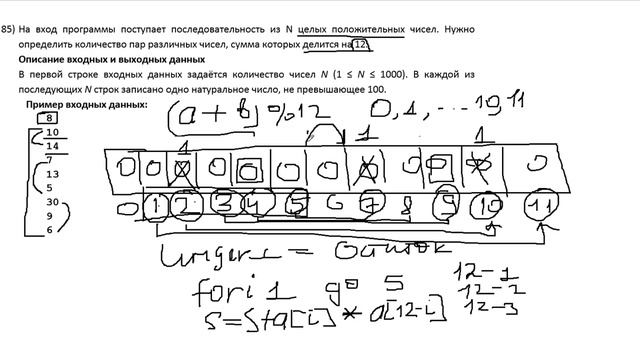 27 задание ЕГЭ Информатика Определение количества пар, сумма которых кратна 12