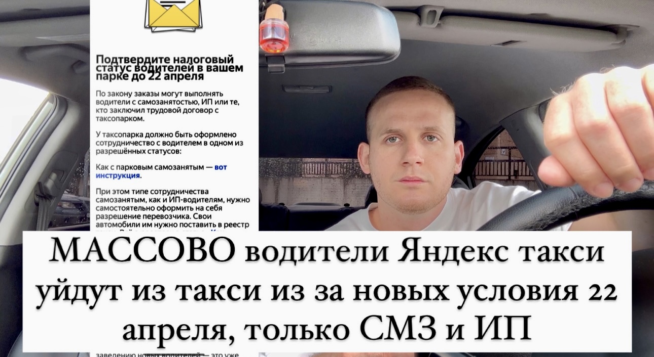 МАССОВО водители Яндекс такси уйдут из такси из за новых условий 22 апреля, только СМЗ и ИП