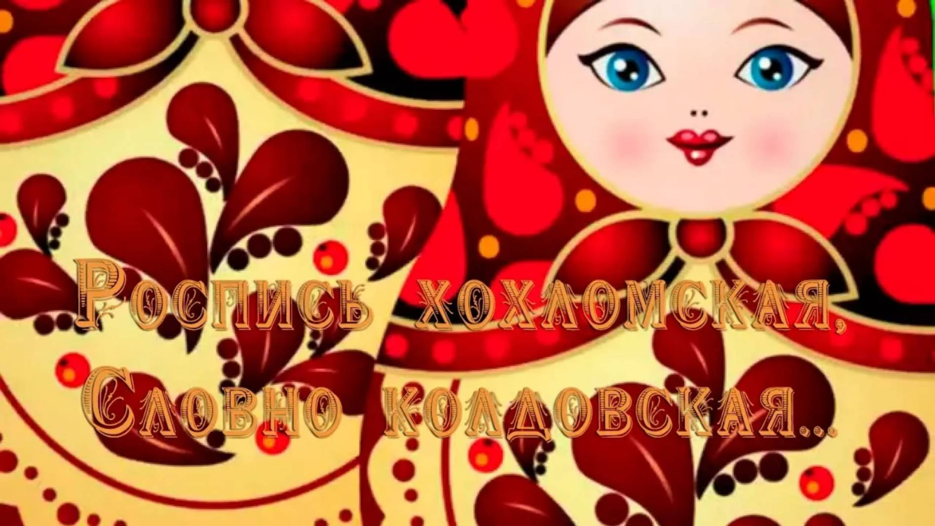 ~ * ~ Роспись хохломская, Словно колдовская. В сказочную песню Просится сама. И нигде на свете Нет таких соцветий, Всех чудес прекрасней Наша Хохлома! Хохлома— старинный русский народный промысел, родившийся в XVII веке в селе Хохлома. Представляет собой декоративную роспись деревянной посуды и мебели, выполненную красными, зелёными и золотистыми тонами по чёрному фону. Место возникновения: Ковернино Первое упоминание: XVII век Используемые материалы: Масляные краски, Алюминиевый порошок, Деревянное изделие Техники изготовления: Масляная живопись, Лужение, Битье баклуш. Видеомонтаж Елены Короед Для просмотра и прослушивания с наилучшим изображением и звуком выставляем на шестеренке справа внизу настройку 1080р .................................................................................................................................