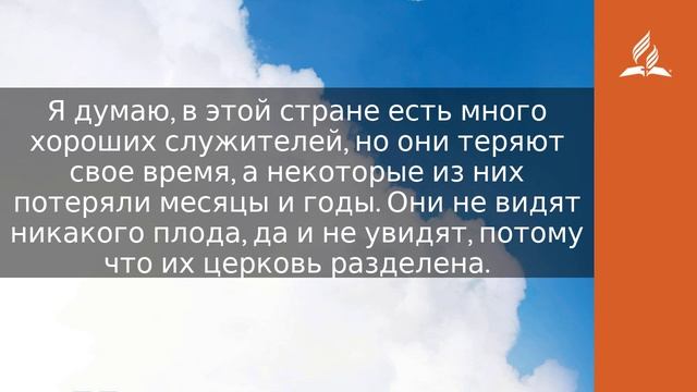 …Стараясь сохранять единство духа в союзе мира (Еф. 4:3). «Мы не можем получить полноты Духа, пока в церкви не будет единства. В день Пятидесятницы ученики были единодушно вместе». Я согласен и в то же время не согласен с братом, сделавшим такое категоричное заявление. Индивидуально любой христианин может исполниться Святым Духом, даже если никого другого не интересует это благословение. Один человек, исполненный Святым Духом, может стать причиной того, что у всего собрания появится интерес к получению дара Духа. Однако единство в церкви очень важно, если вся община желает запылать огнем пробуждения. Евангелист Дуайт Муди сказал однажды: «Когда я путешествовал по разным странам, то заметил одну вещь. Я никогда не видел проявления силы Духа Божьего там, где Господний народ был разделен... Я думаю, в этой стране есть много хороших служителей, но они теряют свое время, а некоторые из них потеряли месяцы и годы. Они не видят никакого плода, да и не увидят, потому что их церковь разделена. Такая церковь не способна расти духовно. Дух Божий не может трудиться там, где существует разделение. Поэтому, чтобы Господь мог совершать Свое дело, в среде Божьего народа должно быть единство» (Dwight Moody, Secret Power, pp. 124–126). Истинное единство достижимо только посредством Святого Духа, потому что его основанием являются плод Духа и подлинная христианская любовь. Единство, требующее единообразия в верованиях, методах миссионерской деятельности, форме служения, а также культурного единообразия, никогда не будет надежным. Сатана посеет разногласия в этих вопросах, если члены церкви будут нетерпимо относиться друг к другу. Те, кто силою Духа стремится уладить разногласия, предают свои взгляды в Божьи руки. Это не значит, что они откажутся от своих личных убеждений, они просто увидят то, что стоит выше их. «Снисходя друг ко другу любовью» (Еф. 4:2), они соединятся узами мира, ставшего возможным благодаря Крови Иисуса. МОЛИТВА Небесный Отец, в этот новый день, дарованный Тобой, помоги мне способствовать установлению единства среди христиан, которых я знаю. https://esd.adventist.org/library/periodicals/ezhednevnyie-chteniya/ #адвентисты #АдвентистыСедьмогоДня #Церковь #ЦерковьАдвентистовСедьмогоДня #ЦерковьХристианАдвентистовСедьмогоДня