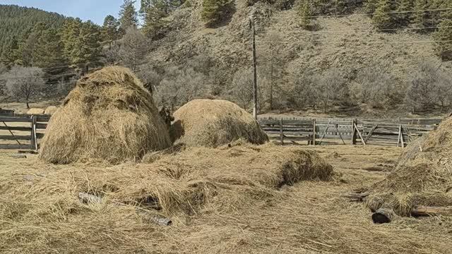 Вершим с Наташей зароды. Закрываем плёнкой.
