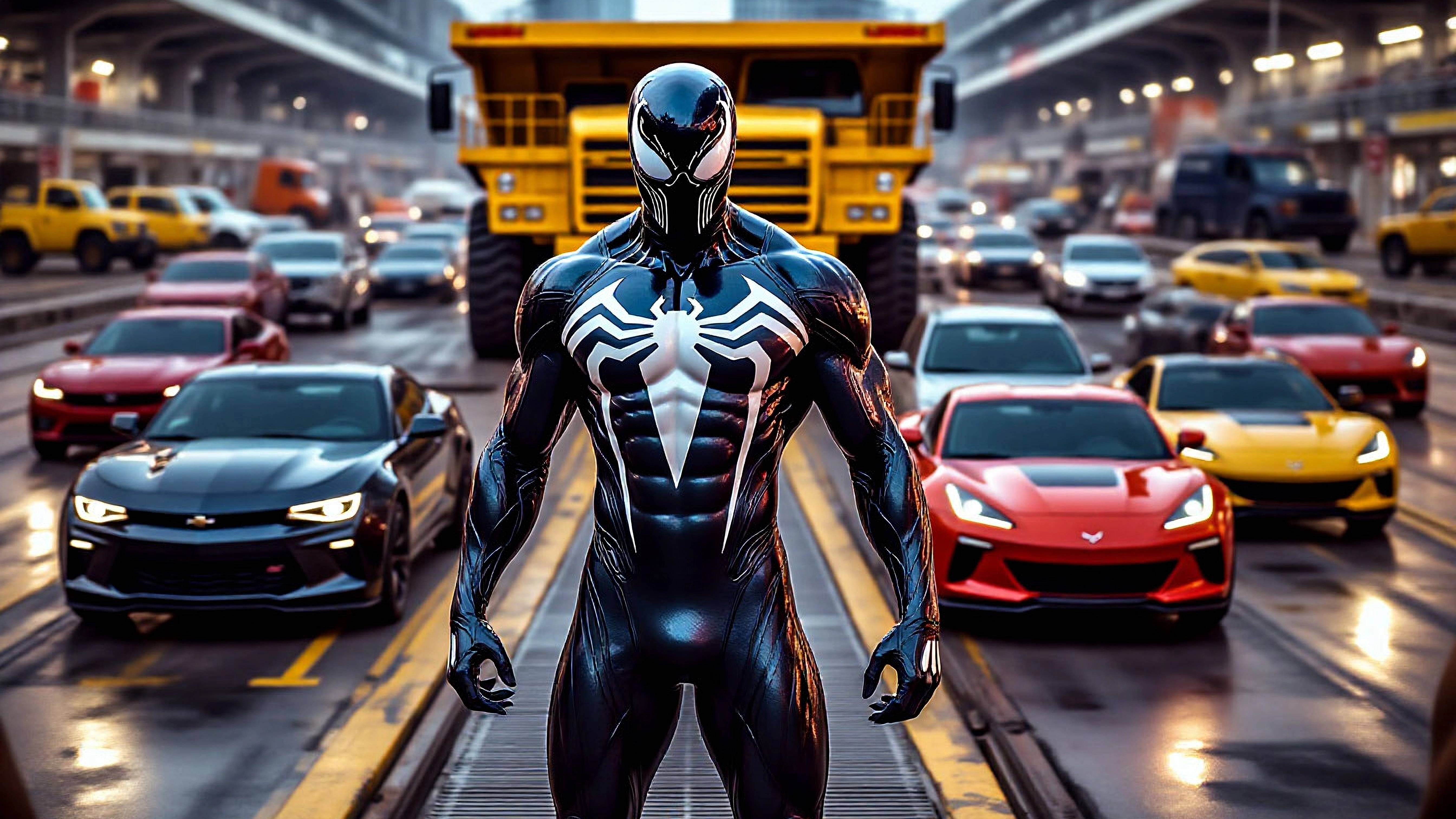 Мультики про машинки. Супер герой испытывает разные автомобиле на обрывистой дороге.